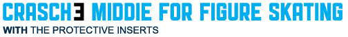 The Crasche® Figure Skating Middie is designed to help protect skaters in the event of a fall.The Middie protective elements are made up of an outer layer of strong polycarbonate plastic, and an inner layer of skin friendly neoprene rubber. The protective element is 2.25 inches high, and the Middie has a soft cotton terry layer next to your the skin. Remove the protective elements before washing. An additional neoprene element is added to the rear of the hat to help keep it in place.