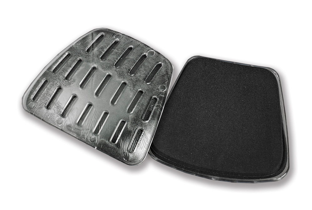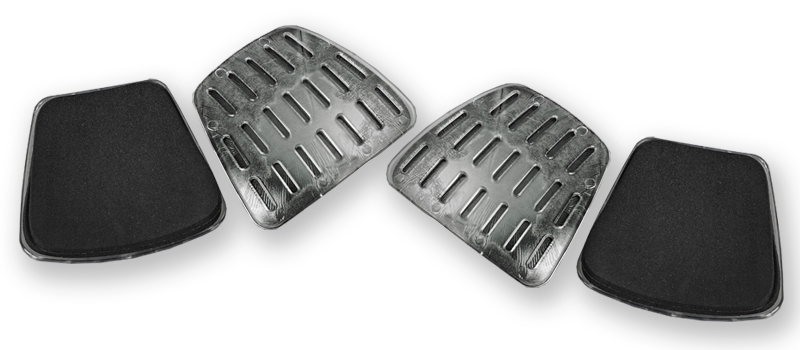 Note: For a tighter fit, remove the two protective inserts that are next to the two larger rear inserts. Then re-insert them with the wide side up. This will reduce the size by over one inch. For Medium, start with a rear protective element.
